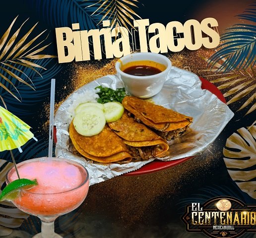 “Urban Mexican” at its finest, with birria tacos that are “loaded and flavorful” per Yelp (4.1/5, 28 reviews). The drive-thru makes it convenient, and the consommé is spicy perfection. Pair with their birria pizza for fun.