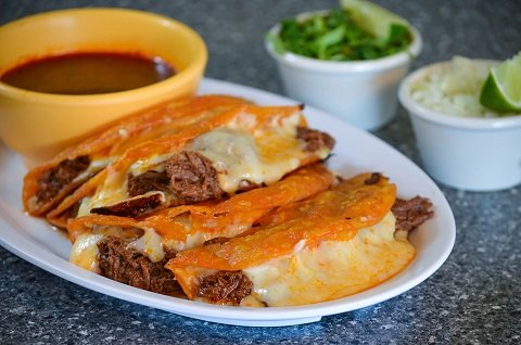 Quesabirria shines here with a 4.7 Google rating. Affordable and comforting, locals love the cheesy, dunkable tacos—ideal for takeout.