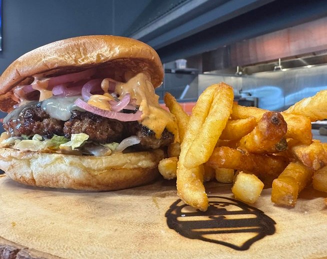 Butcher’s Union is a local favorite for its high-quality, house-ground burgers, earning a 4.5/5 rating on Yelp from over 600 reviews. Their signature Union Burger, featuring aged cheddar, bacon jam, and pickles, is celebrated for its rich flavors and paired with an extensive whiskey selection. This upscale gastropub offers a refined yet approachable vibe.